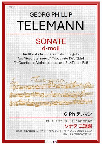 この作品は、G.P.テレマンの様々な楽器のためのソナタ集「音楽の練習帳(Essercizii musici)」から「フルート・トラヴェルソ(以下「フルート」)、ヴィオラ・ダ・ガンバと通奏低音のためのトリオソナタロ短調(TWV 42:h4)」を「リコーダーとオブリガードチェンバロのためのソナタ」に書き換えたものです。曲は、Largo-Vivace-DolceVivace の教会ソナタ形式です。書き換えに当たっては、ヴィオラ・ダ・ガンバパートを1オクターブ上げてチェンバロの右手に配置し、要所に内声を付加しました。