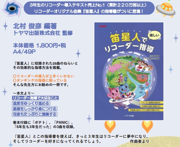 ※本書は、『笛星人』リコーダー譜、ピアノ伴奏譜、または CDと併せてご使用ください。本書のみでは指導できません。